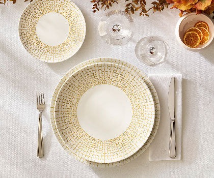 "Apportez la touche finale à votre table avec notre sélection de vaisselle alliant style, qualité et élégance."
